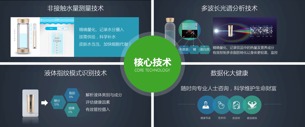 非接觸式水位測量技術、多波長光譜分析水杯應用技術、液體成份識別技術應用等多項專利注冊成功